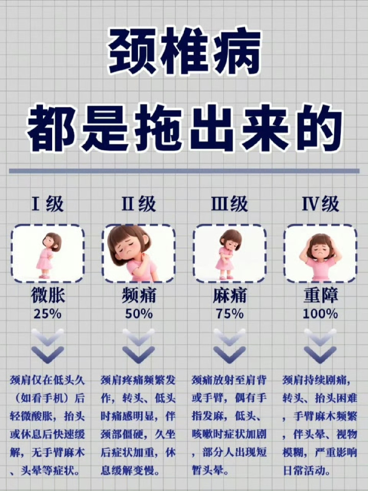 预防远比治疗更重要。医生建议:日常工作、学习时避免长时间低头;每工作或低头30-60分钟,就起身做简单的颈部伸展;通过游泳等运动增强颈部肌肉力量。